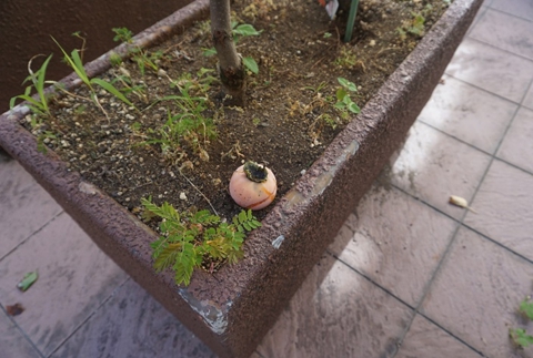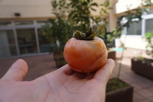 中庭担当のWです!! 中庭に出て見たら柿が落ちている・・・