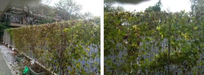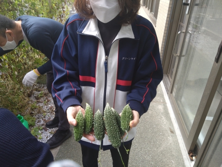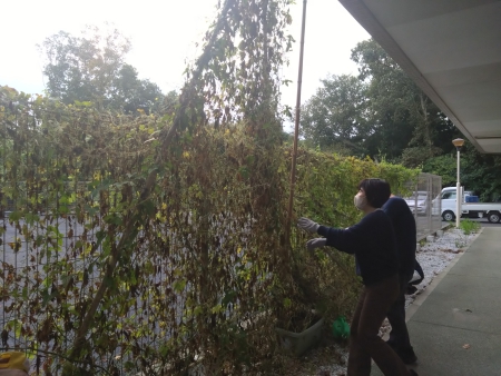 秋ですね。経営本部横のゴーヤの葉もすっかり茶色くなっています。